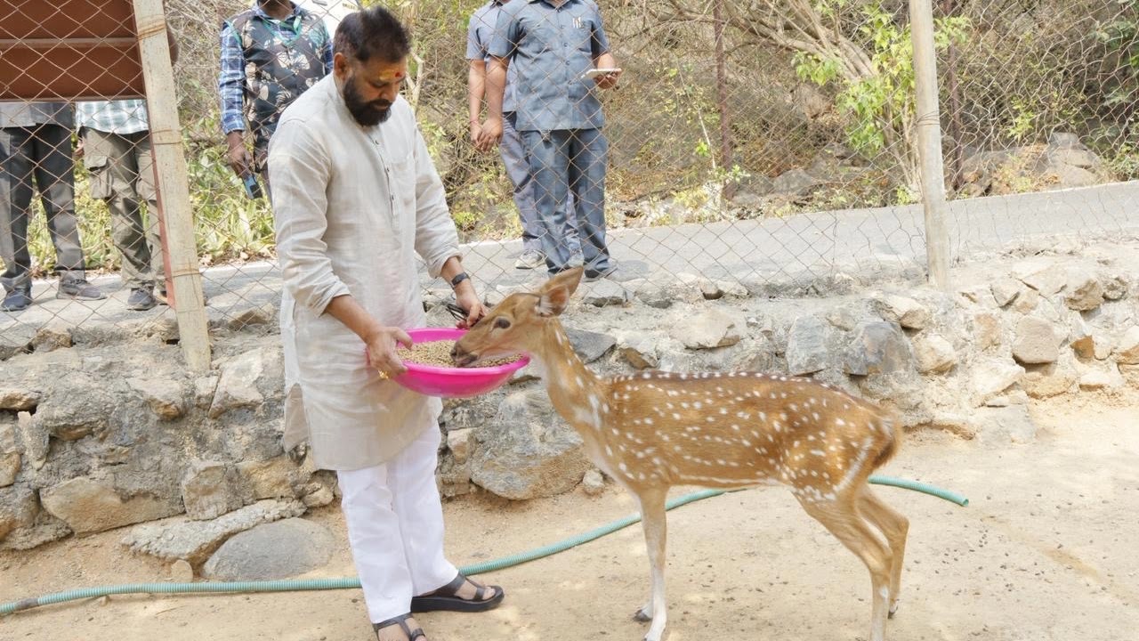 అనంతరం కోటప్పకొండ ఘాట్ రోడ్డులో ఆ శాఖ ఆధ్వర్యంలో ఏర్పాటు చేసిన వనవిహారి జింకల పార్కును పవన్ కళ్యాణ్ సందర్శించారు. పార్కులోని మచ్చల జింకలకు స్వయంగా ఆహారం అందించారు.
