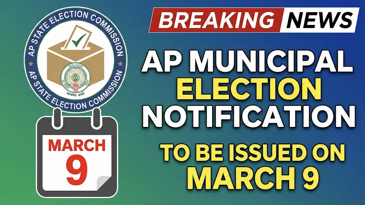 రాష్ట్రంలో స్థానిక సంస్థల ఎన్నికల ప్రక్రియను లాంఛనంగా ప్రారంభిస్తూ రానున్న పురపాలక ఎన్నికల నోటిఫికేషన్ను మార్చి 9, 2026న విడుదల చేయనున్నట్లు ఆంధ్రప్రదేశ్ రాష్ట్ర ఎన్నికల సంఘం ప్రకటించింది.