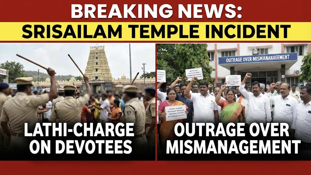 శివ భక్తులపై పోలీసులు లాఠీచార్జి చేయడంతో పవిత్రమైన శ్రీశైలం ఆలయంలో తీవ్ర వివాదం చెలరేగింది, ఇది యాత్రికులు మరియు మత సమూహాలలో విస్తృత ఆగ్రహాన్ని రేకెత్తించింది. ఆలయ అధికారుల స్థూల నిర్వహణా లోపం, క్యూ లైన్లలో గందరగోళం మరియు భావోద్వేగంతో కూడిన ఘర్షణకు దారితీసిన ఆరోపణల మధ్య ఈ సంఘటన జరిగింది.