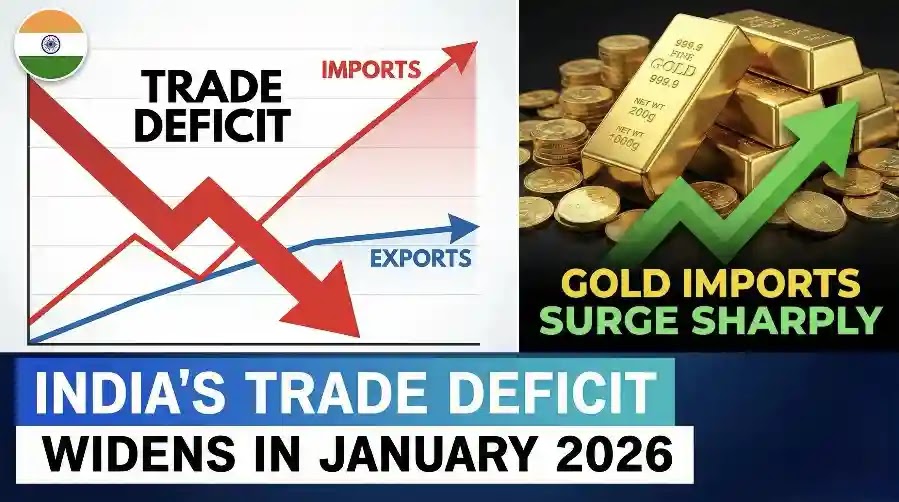 ప్రభుత్వం విడుదల చేసిన తాత్కాలిక వాణిజ్య డేటా ప్రకారం, బంగారం దిగుమతులు గణనీయంగా పెరగడం వల్ల మొత్తం ఇన్బౌండ్ షిప్మెంట్లను ఇటీవలి నెలల్లో అత్యధిక నెలవారీ స్థాయికి నెట్టడంతో భారతదేశ వాణిజ్య వాణిజ్య లోటు జనవరి 2026లో బాగా పెరిగింది.